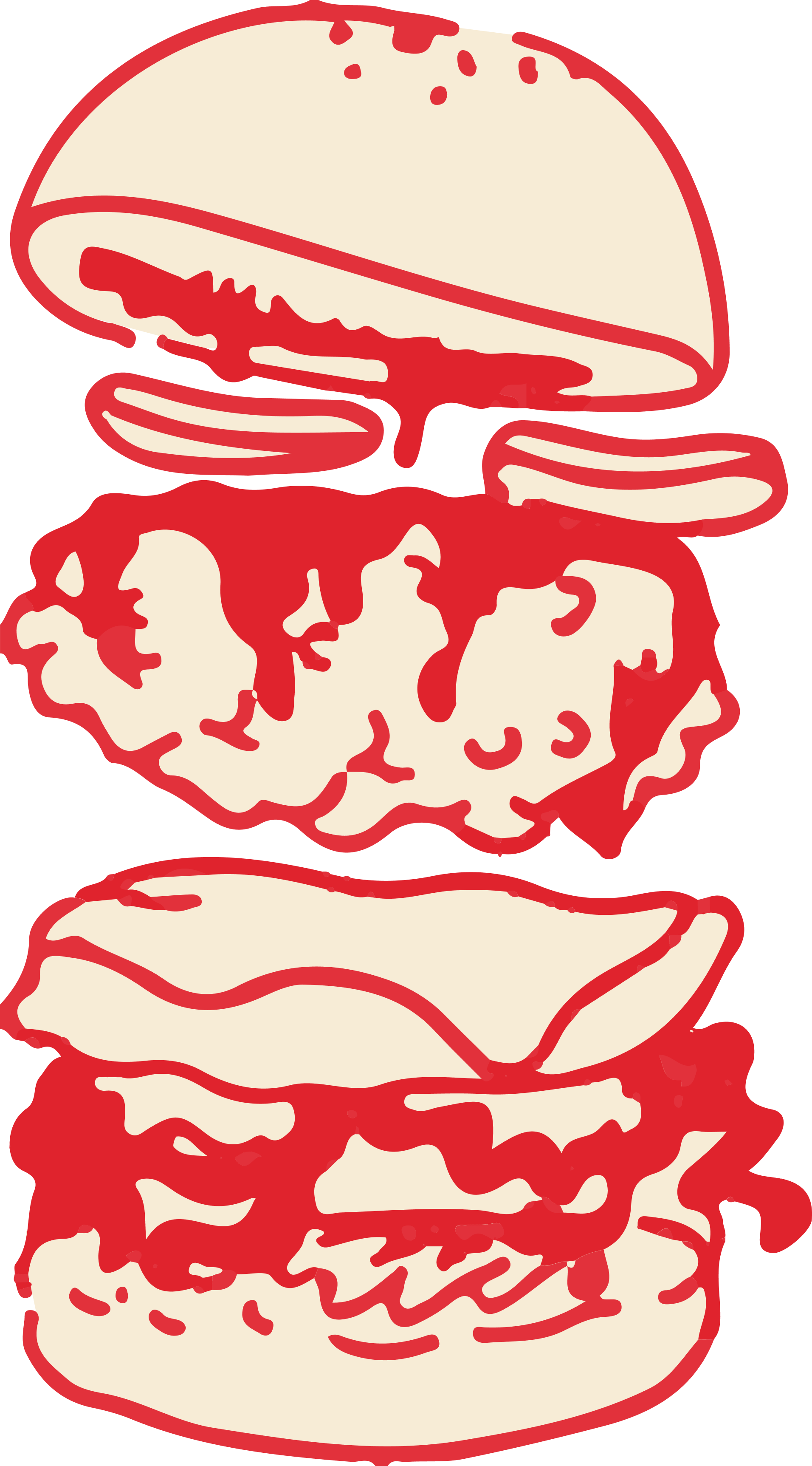 Pan brioche, pechuga de pollo frito 150g. mayonesa sambal, 2 rebanadas de queso americano acompañada de nuestra hood sauce (60 ml) aparte.