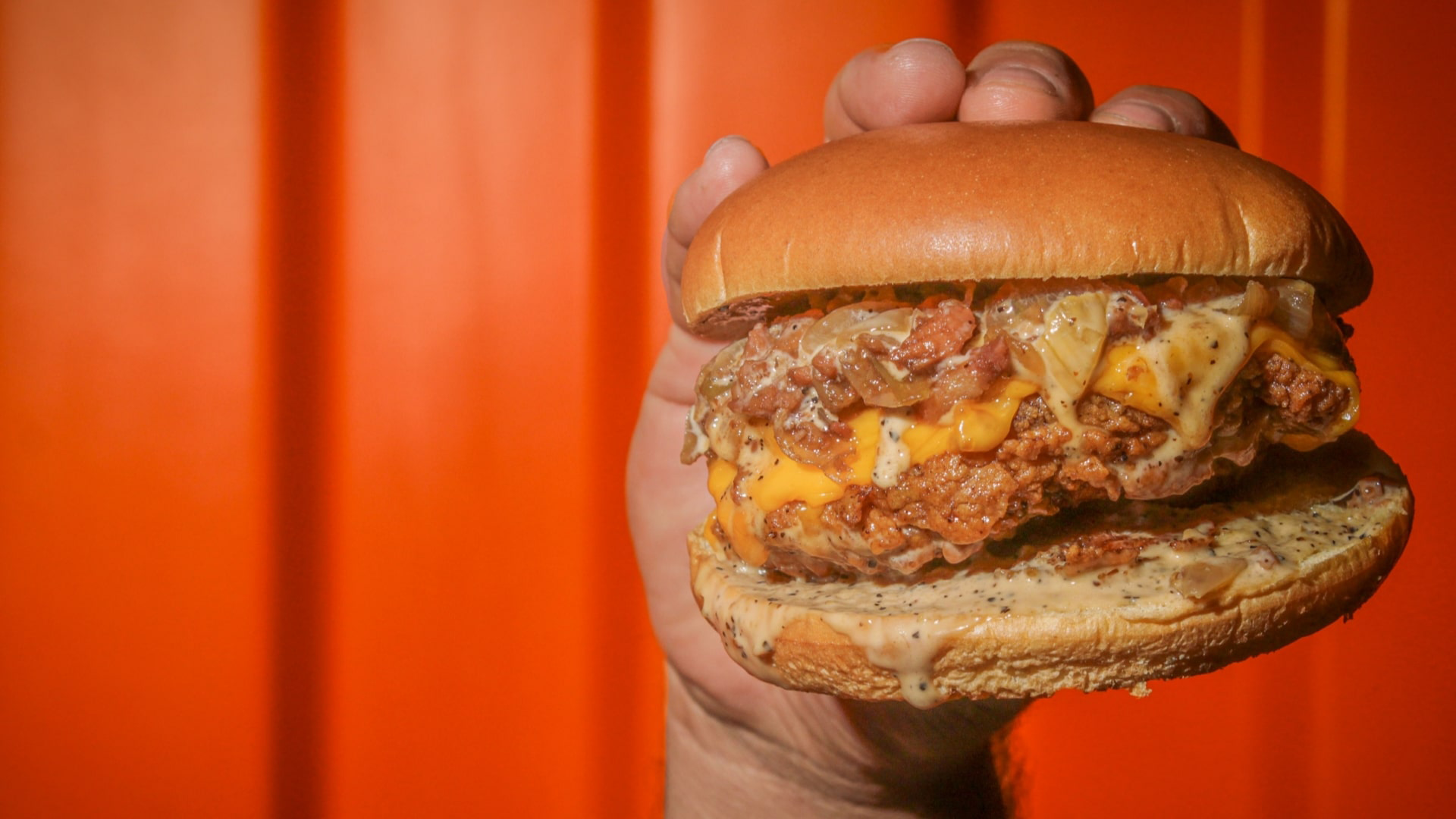 Pan brioche, pechuga de pollo frito 150g. mayonesa sambal, 2 rebanadas de queso americano acompañada de nuestra hood sauce (60 ml) aparte.
